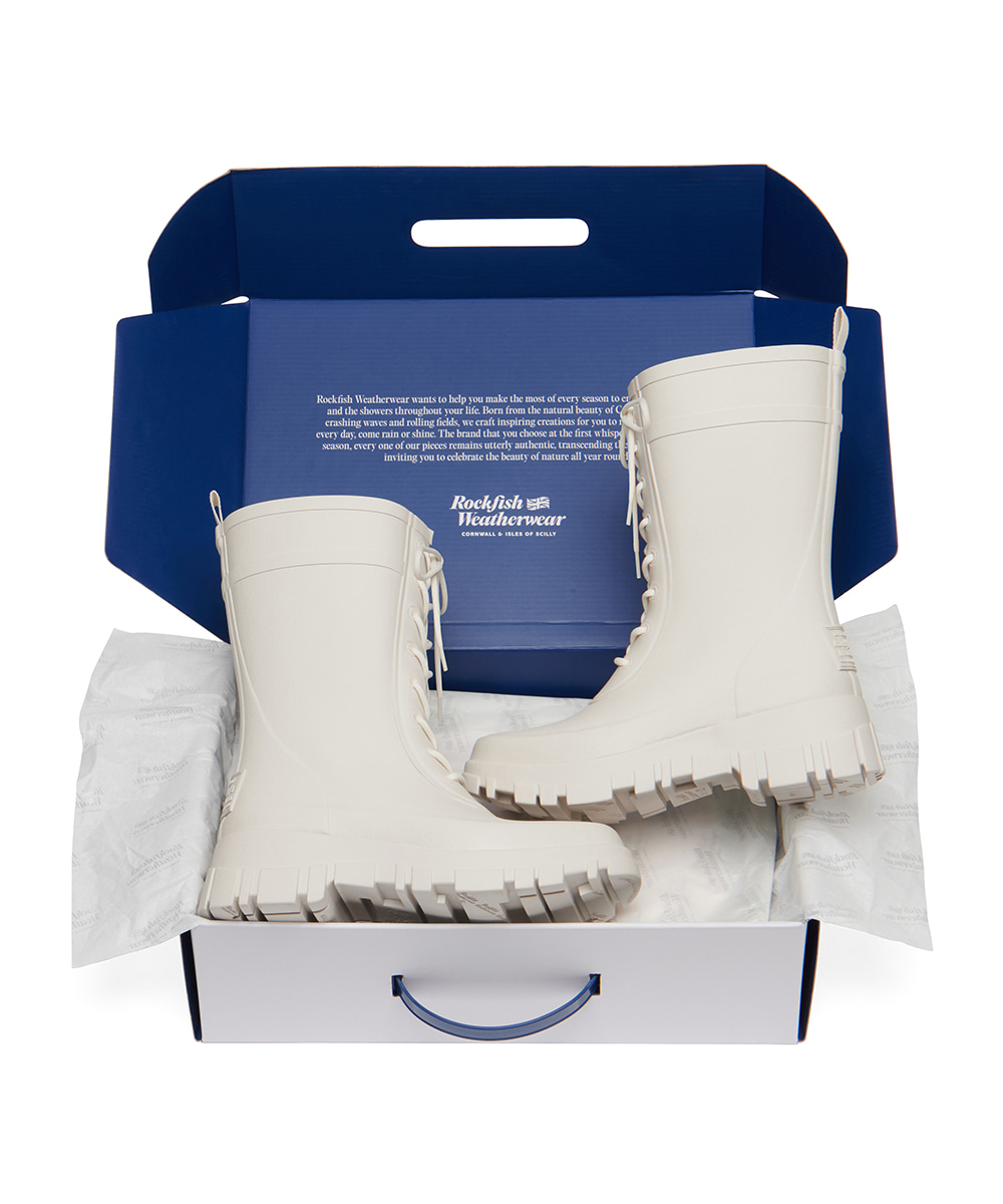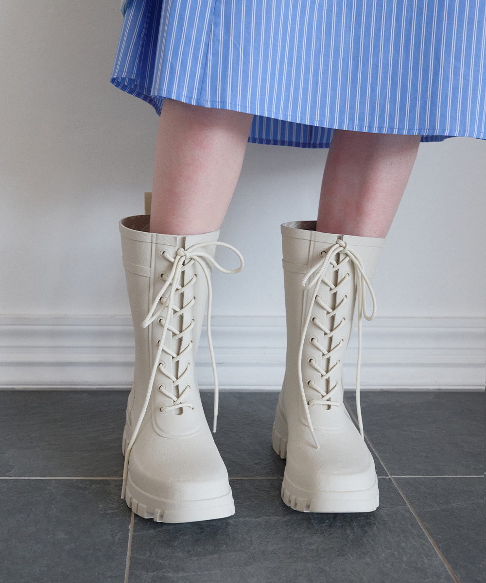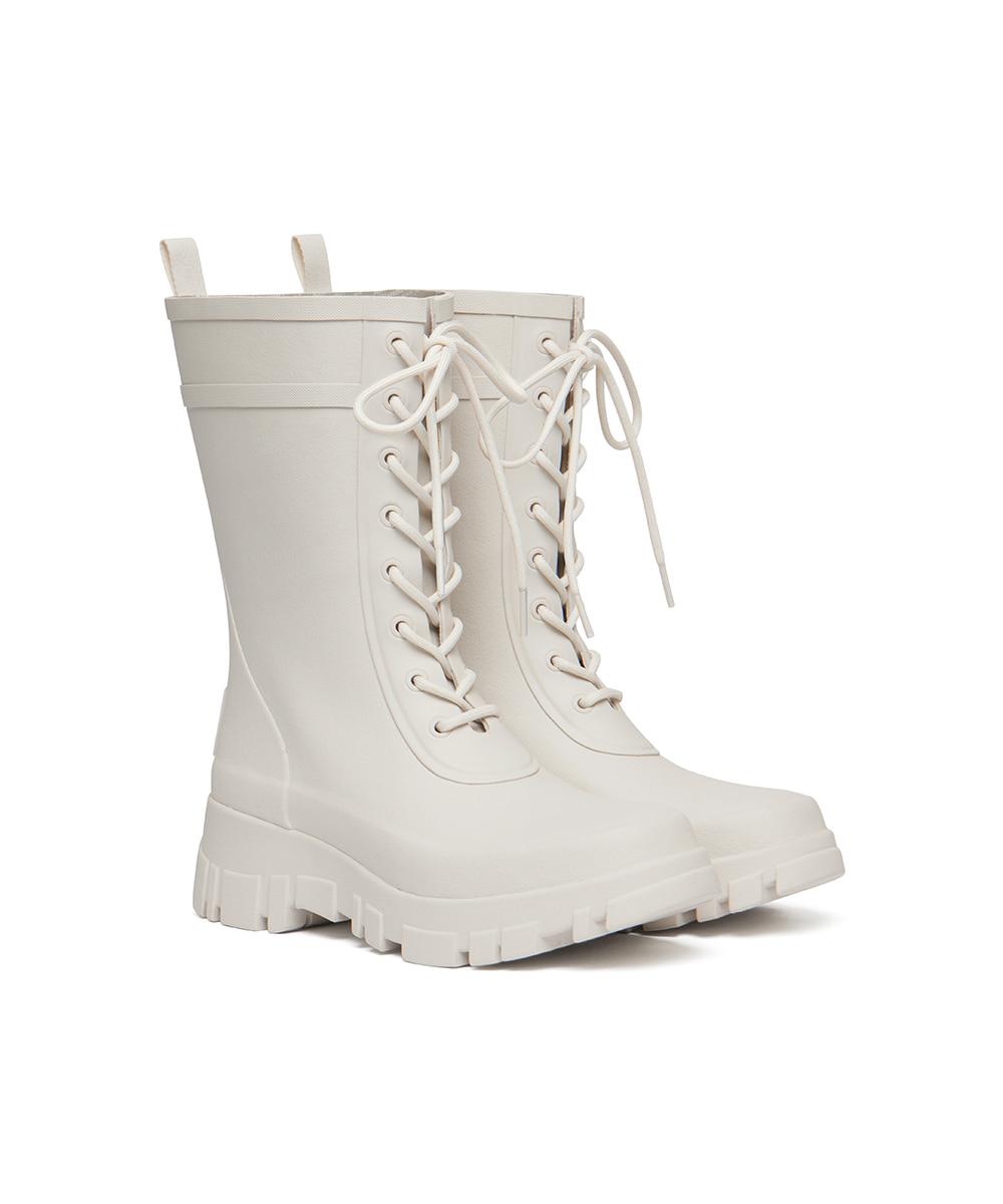 rockfish-weatherwear - FLATFORM LACEUP RAIN BOOTS MIDDLE - CREAM