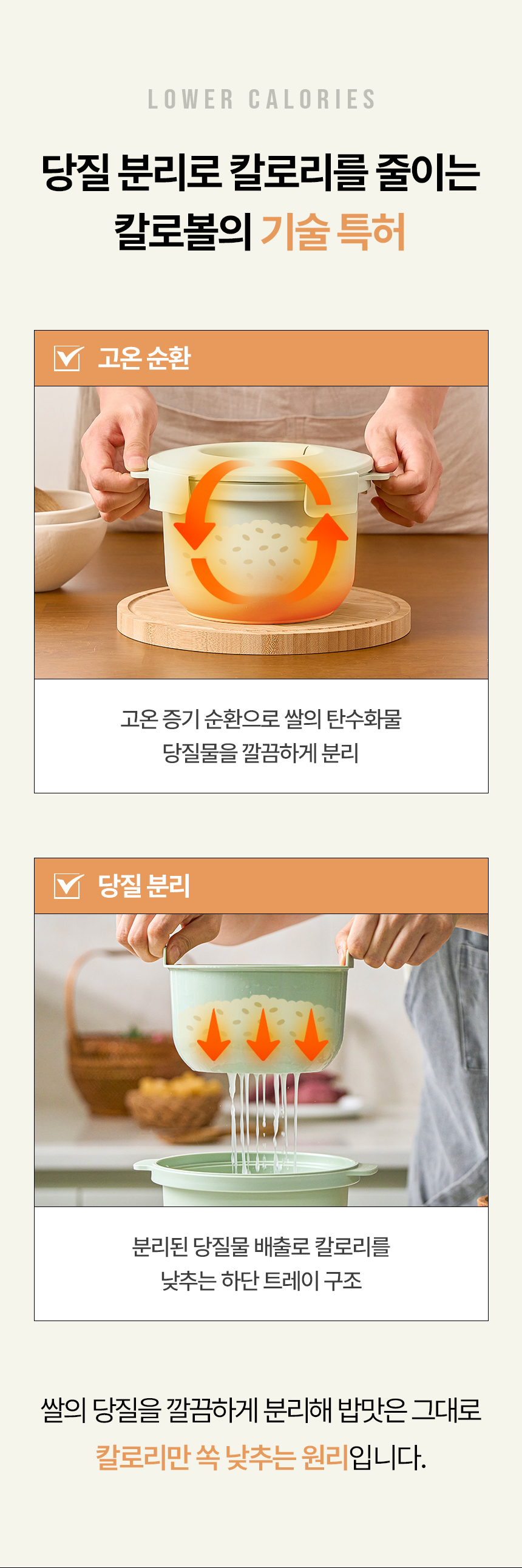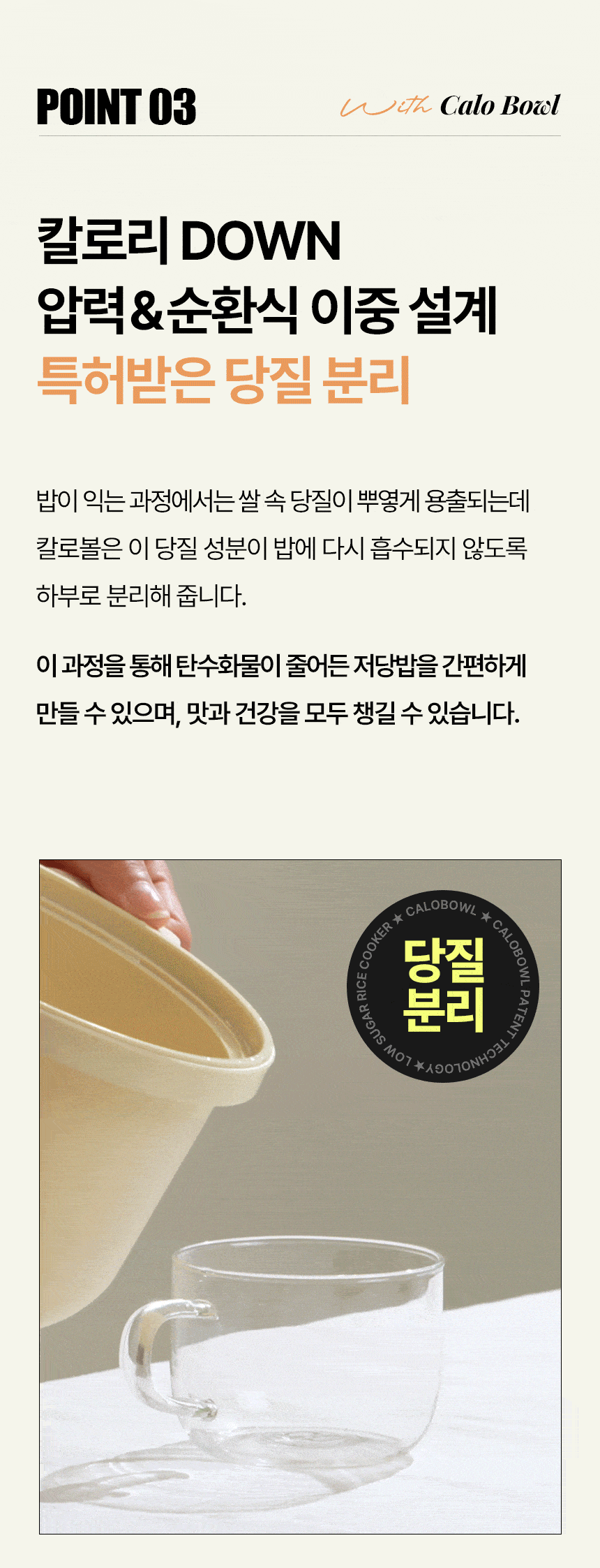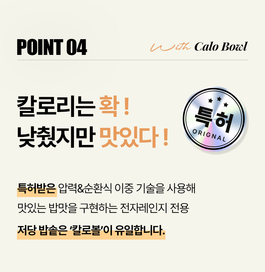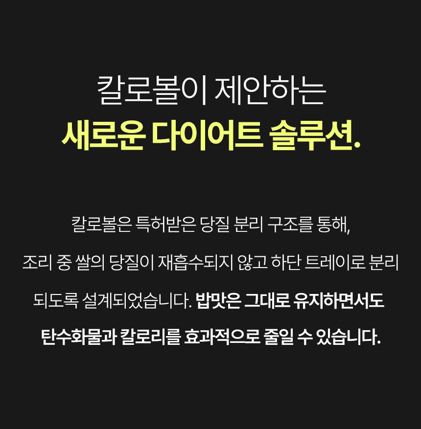 韓國 CaloBowl(卡路寶)是一款專為減醣、控醣人士設計的專利低糖減卡路里微波爐料理鍋。 它利用特別的設計,在煮飯過程中將米飯中的糖分和澱粉分離,達到減少熱量和碳水化合物的效果。 核心技術與特色: 專利技術減糖: CaloBowl 利用高溫蒸氣將米裡的糖分和澱粉分離,多餘的糖分會流到下方的托盤中。 顯著減醣效果: 實驗證明可使碳水化合物減少高達 49.3%,卡路里降低約 43.9%。 微波爐專用: 這是一款特殊的微波爐料理鍋,方便快速煮出低糖飯,3L 的容量適合日常家庭使用。 優質材質: 產品通常使用不鏽鋼材質(例如 POSCO 不鏽鋼),安全耐用。 SGS 認證: 其減糖效果經過 SGS 國際認證檢測。 這款產品適合注重熱量攝取、需要控制血糖或減肥的人士使用。 使用方法: